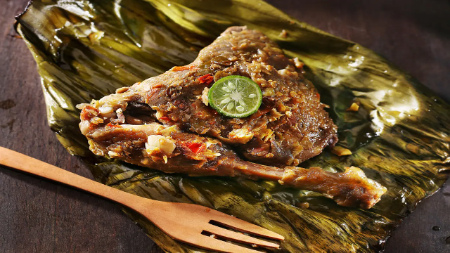 • Daun pepaya (2 lembar, remas-remas untuk membungkus daging agar lebih empuk)